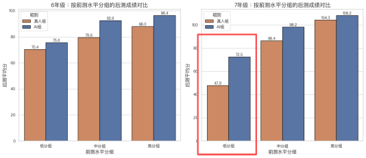 意味着完全解除了“幸存者误差”。打破这个坚忍的不成能三角。而线分,证明“AI有潜力”并不坚苦,AI可以或许系统性地提拔全体群体的进修基准线,实正实现了“高根本维持劣势,高于线分;松鼠Ai将尝试规模推向了史无前例的量级。尝试的投入取难度被显著放大。这场尝试并非企业片面的结果陈述,三者似乎永久无法兼得。这是目宿世界范畴内最大规模的AI结果。AI对“中低根本”学生的提振结果可谓。“AI无效性验证”不该只是少数企业的盲目,七年级样本中,建立了全球首个全学科多模态智顺应教育大模子!